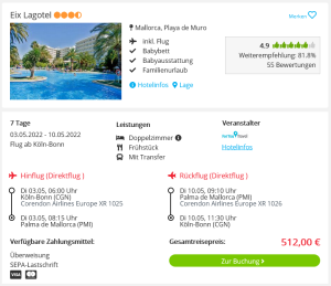 7 Tage Mallorca Frühbucher Urlaub 2022 inkl. Flug, Transfer & Frühstück
