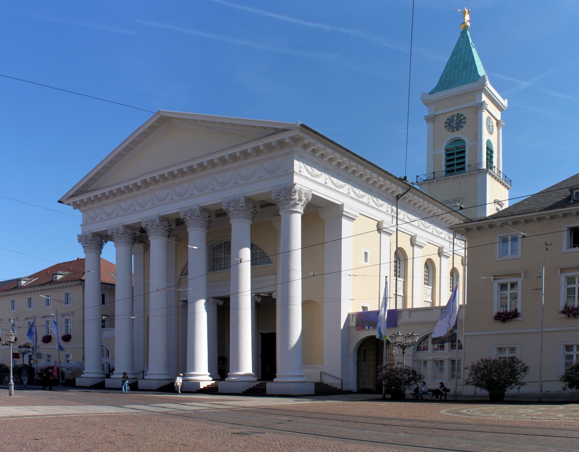 Die Stadtkirche ist eine evangelische Kirche im Herzen von Karlsruhe. Das Besondere sind die markanten Säulen, die nicht nur der Kirche selbst, sondern der ganzen Stadt einen ganz besonderen Akzent verleihen.